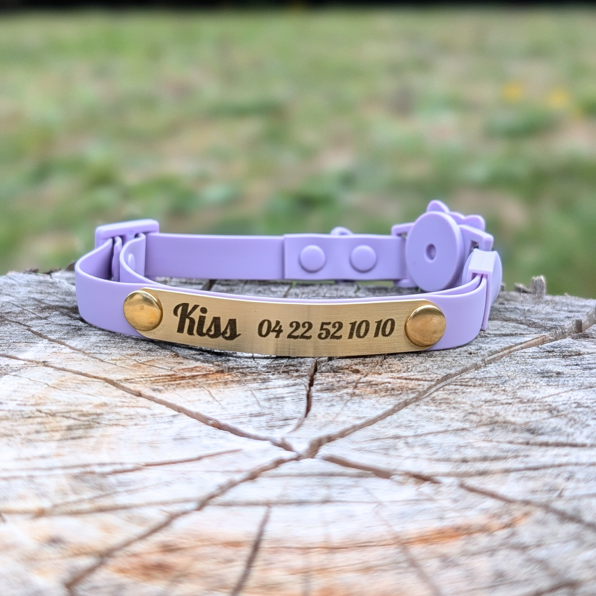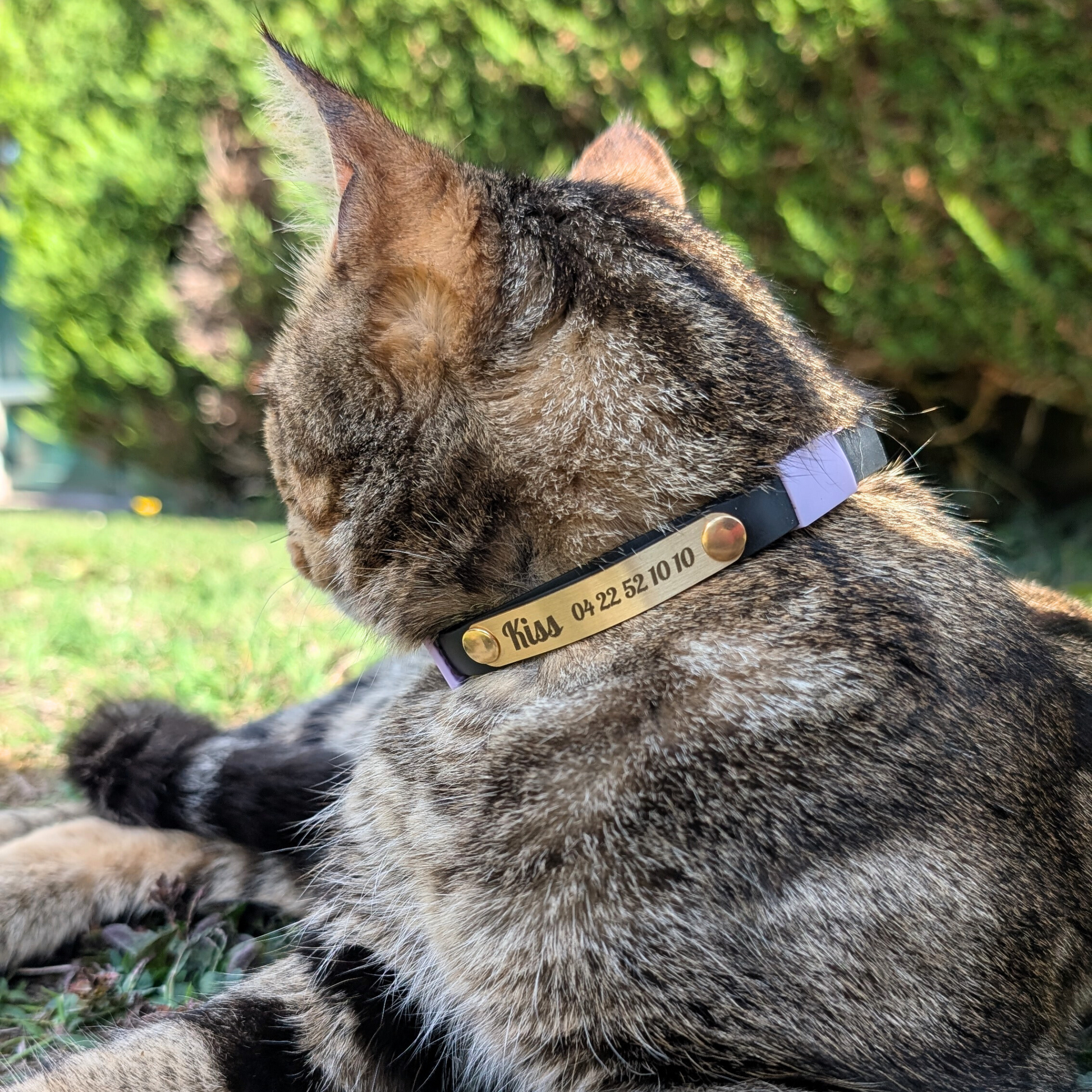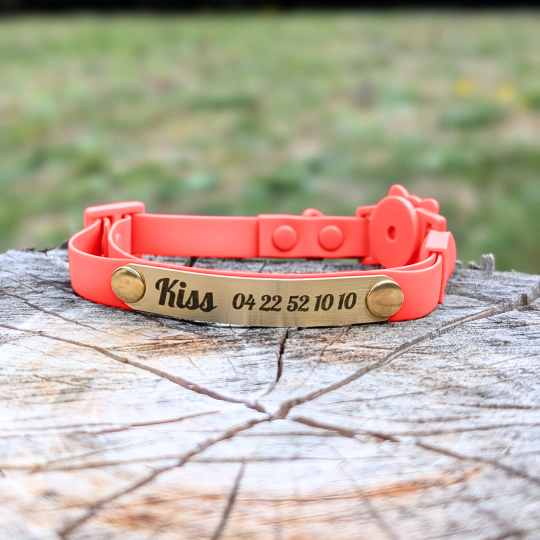 Faites graver le prénom ou surnom de votre compagnon, accompagné de votre numéro de téléphone (au cas où son esprit d’aventurier le mènerait un peu trop loin 🐾).
